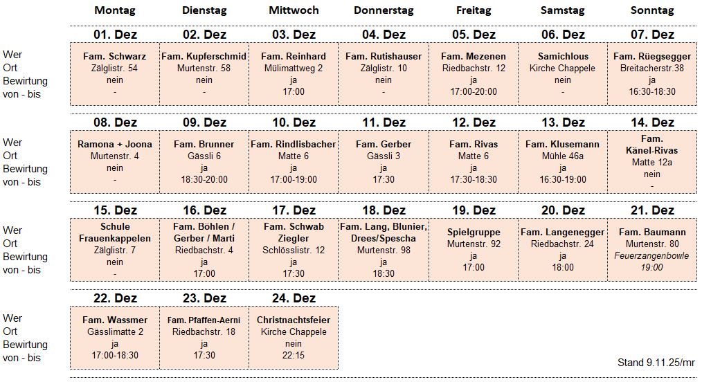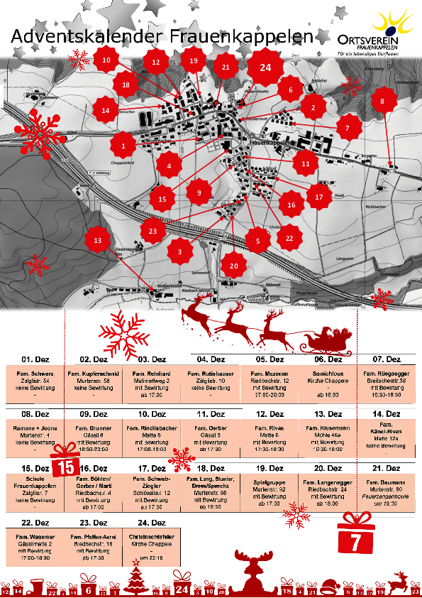 Es ist nicht selbstverständlich, dass wir jedes Jahr alle Fenster besetzen können. Deshalb freuen wir uns sehr, dass wir es auch in diesem Jahr geschafft haben. Ganz herzlichen Dank allen, welche ein Fenster gestalten!